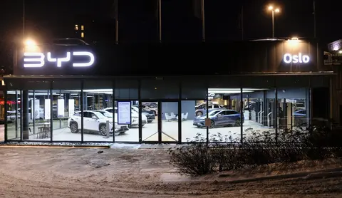 这是1月2日在挪威首都奥斯陆拍摄的中国车企比亚迪的一家经销商门店。 新华社发(陈雅琴摄)