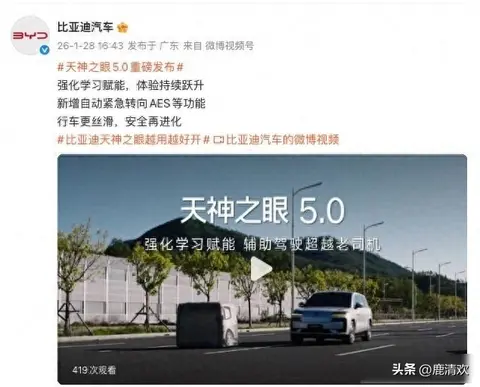 2026年1月28日,比亚迪推出“天神之眼5.0”,这系统不是简单增加摄像头或升级芯片,而是让汽车自己学习驾驶方式,过去辅助驾驶依赖人工设定规则,比如识别到行人就刹车,但现实中情况复杂多样,新系统能够从日常行驶中积累经验,边开边学。
