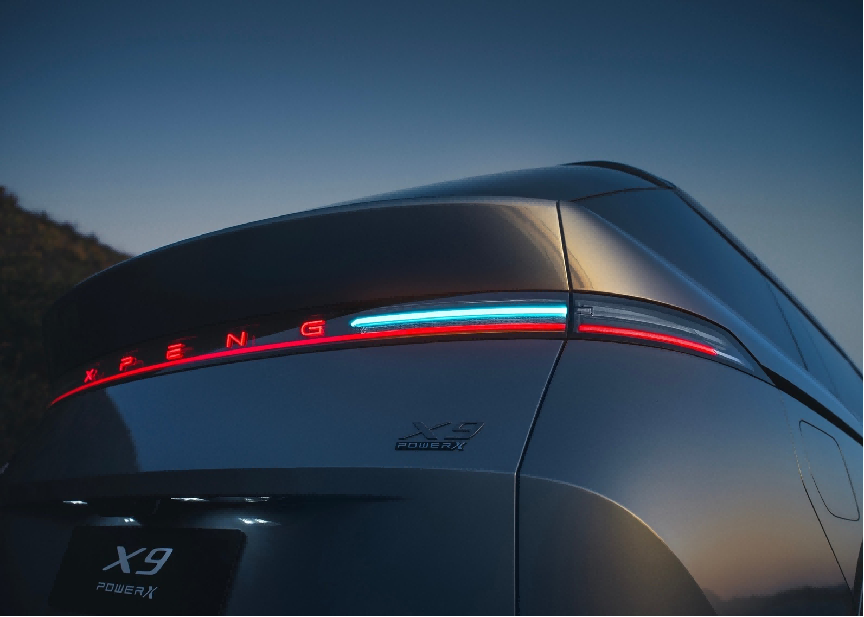 车尾部分,2026款小鹏X9纯电版维持了标志性的大倾斜后车窗设计,贯穿式尾灯组与侧滑门滑轨形成一体式连接。特别值得注意的是,尾部的英文标识可与贯穿式尾灯一同点亮,细节之处尽显精致。新车提供星云紫、极光青、暗夜黑、星舰灰(哑光)、新月银、星云白共6种车身颜色可选。